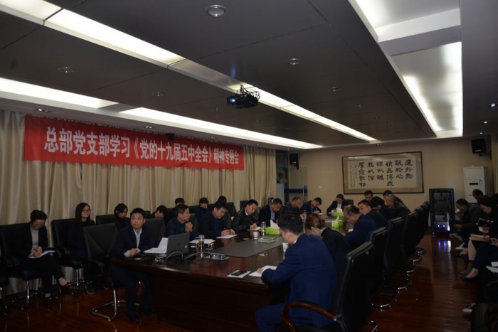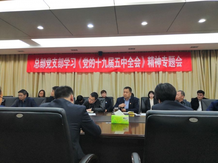 2020年11月10日晚,公司總部黨支部組織召開學習貫徹《黨的十九屆五中全會》精神專題會。公司董事長、黨委書記胥立、班子成員及各部門相關黨員干部共計30余人參會,會議由總部黨支部書記沈為民主持。
