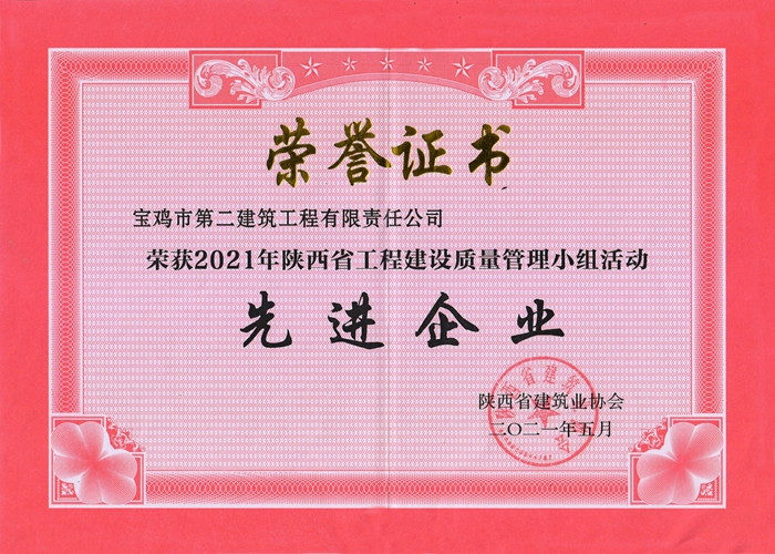 2021年陜西省工程建設(shè)質(zhì)量管理小組活動(dòng)先進(jìn)企業(yè)