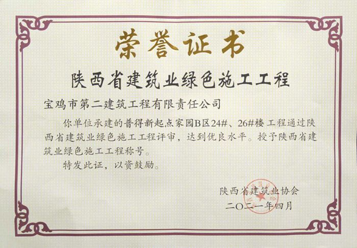 2021年陜西省建筑業(yè)綠色施工工程(普得新起點家園B區(qū)24#、26#樓工程)