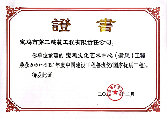 2020~2021年度中國(guó)建設(shè)工程魯班獎(jiǎng)(寶雞文化藝術(shù)中心(新建)工程)