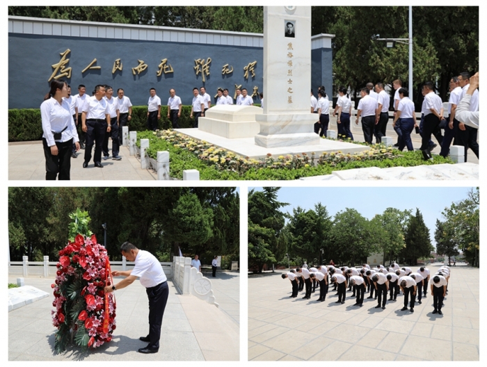 黨委書記、董事長(zhǎng)胥立代表集團(tuán)黨委向焦裕祿烈士敬獻(xiàn)花籃、整理緞帶。全體人員向焦裕祿紀(jì)念碑鞠躬致敬,瞻仰焦裕祿烈士墓,表達(dá)對(duì)焦裕祿同志的崇高敬意和深深哀思。