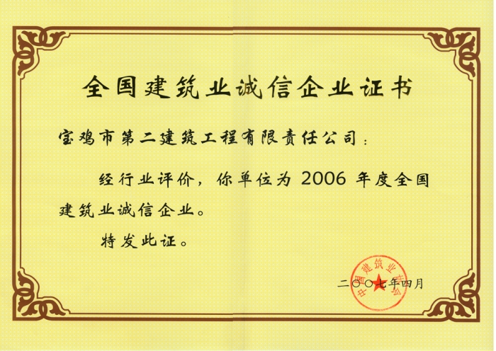 2006年全國建筑業(yè)誠信企業(yè)